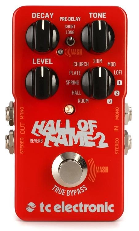 Côté sélecteur on trouve les effets Reverb classique: Room, Hall, Spring, Plate, Church mais aussi un Shim, Mod et LOFI. S'ajoutent trois presets que vous pouvez paramétrer avec TonePrint Editor (pas encore essayé)