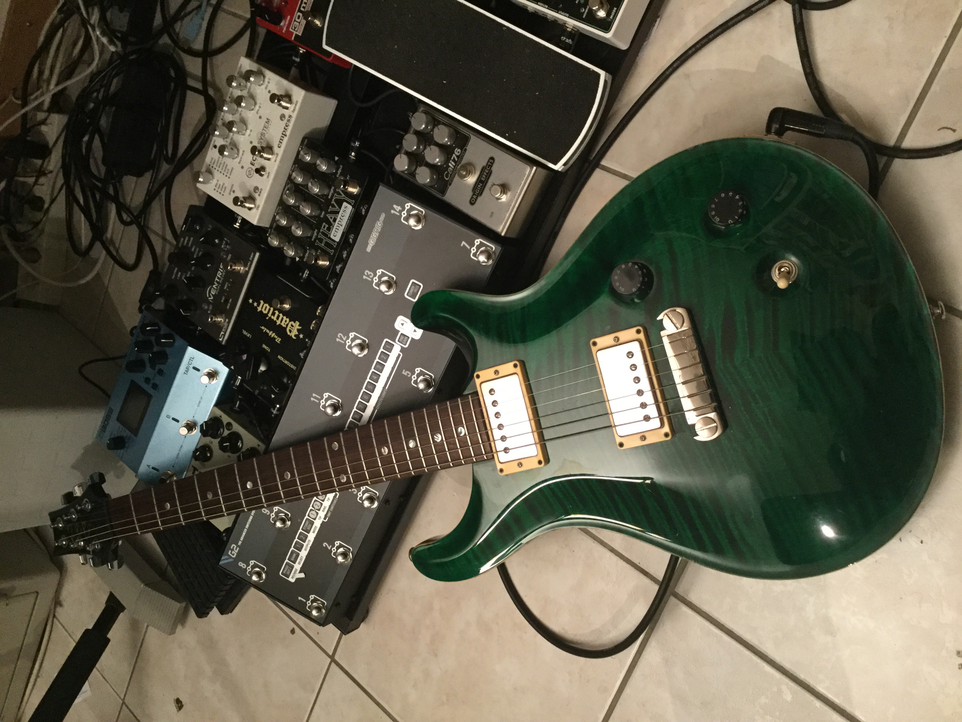 Ca faisait longtemps que je voulais une PRS. Un soir, avant de monter sur Paris pour le concert des Guns, je regarde les petites annonces, et là, je tombe sur une offre incroyable pour une PRS 22 proche de Paris. Ni une ni deux je contacte le vendeur et on se fixe un rdv quelques heures avant le concert. La soirée a été longue et il a fallu encore attendre le retour le lendemain pour brancher la bête.