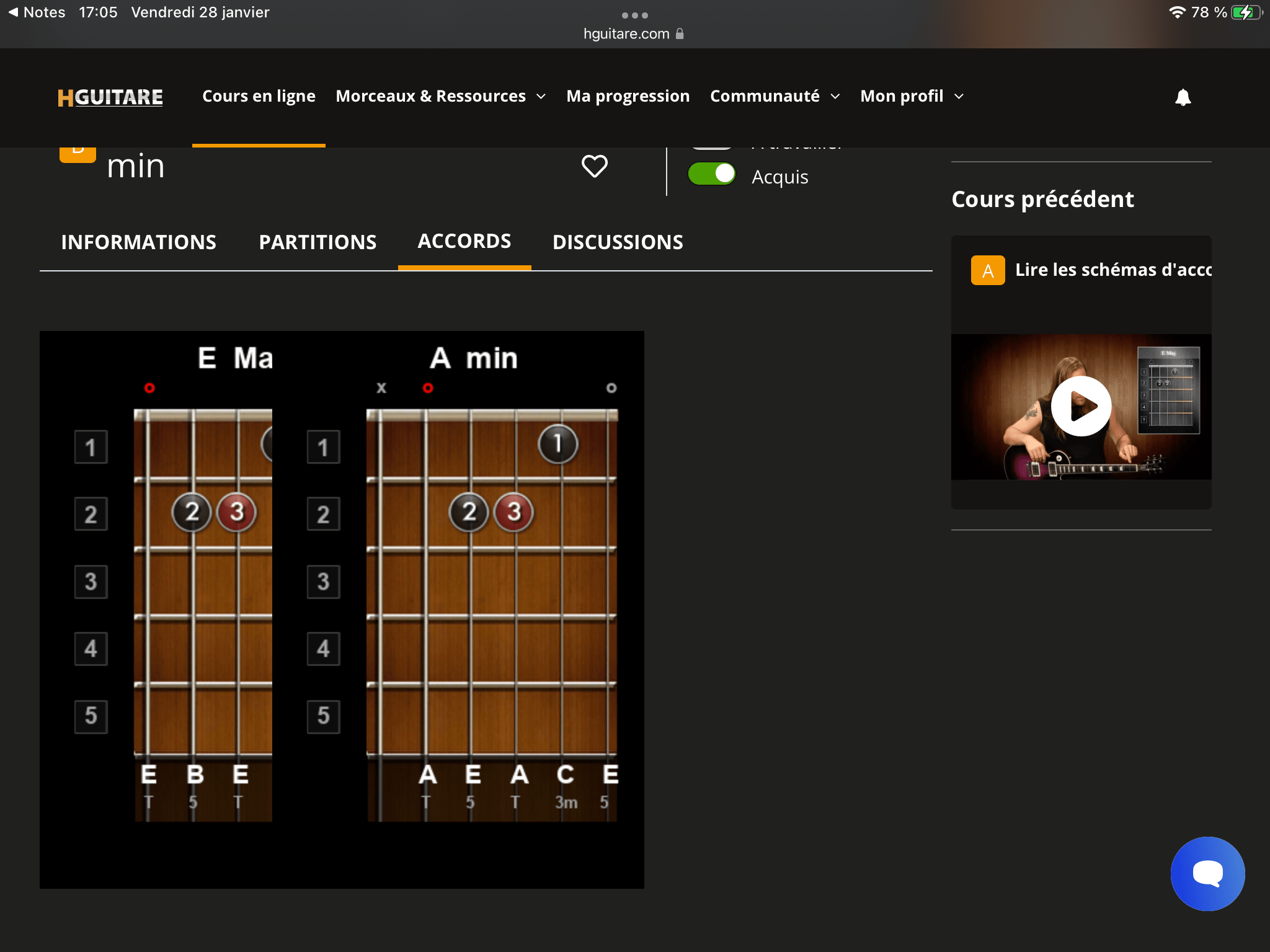 Aloors autant je pleure pour rentrer les gammes (2 soirées / 1H30 dessus) autant les accords ca passe tout seul sans douleurs, y'a bien un truc que je dois faire mal non ?