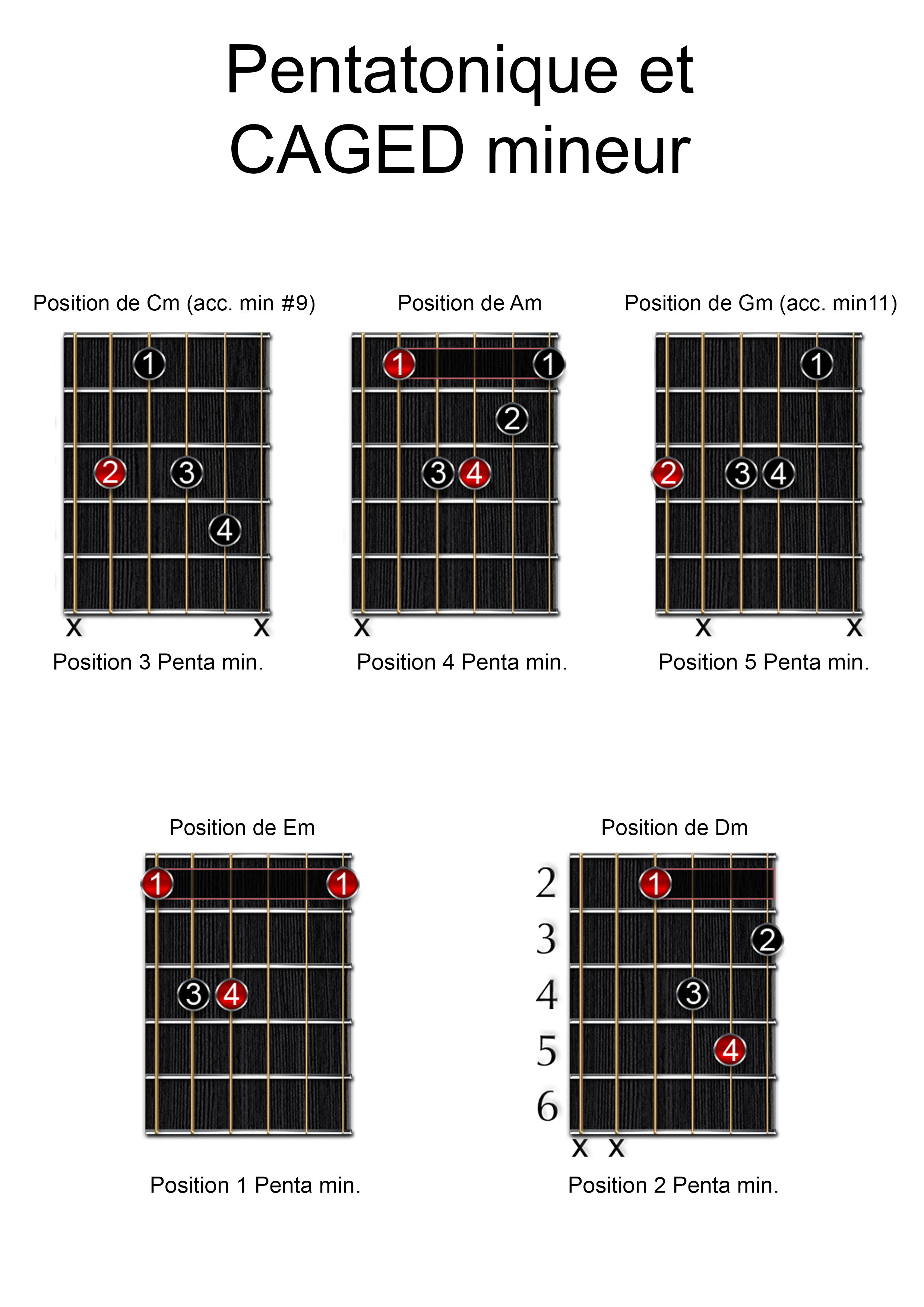 Après avoir bien intégrer ce système CAGED, nous allons le lier à l'utilisation des gammes penta afin de vous libérer encore un peu plus en improvisation.