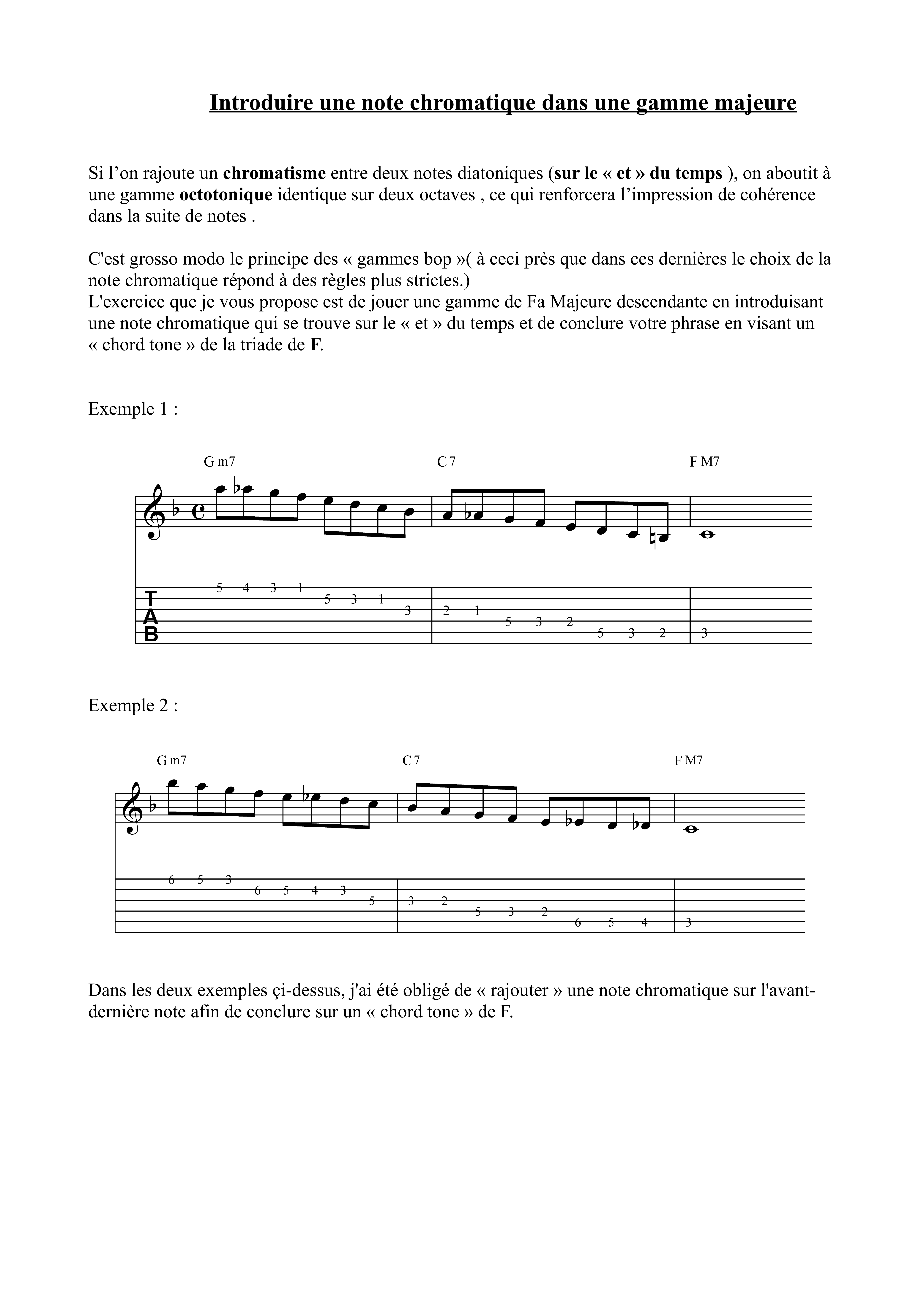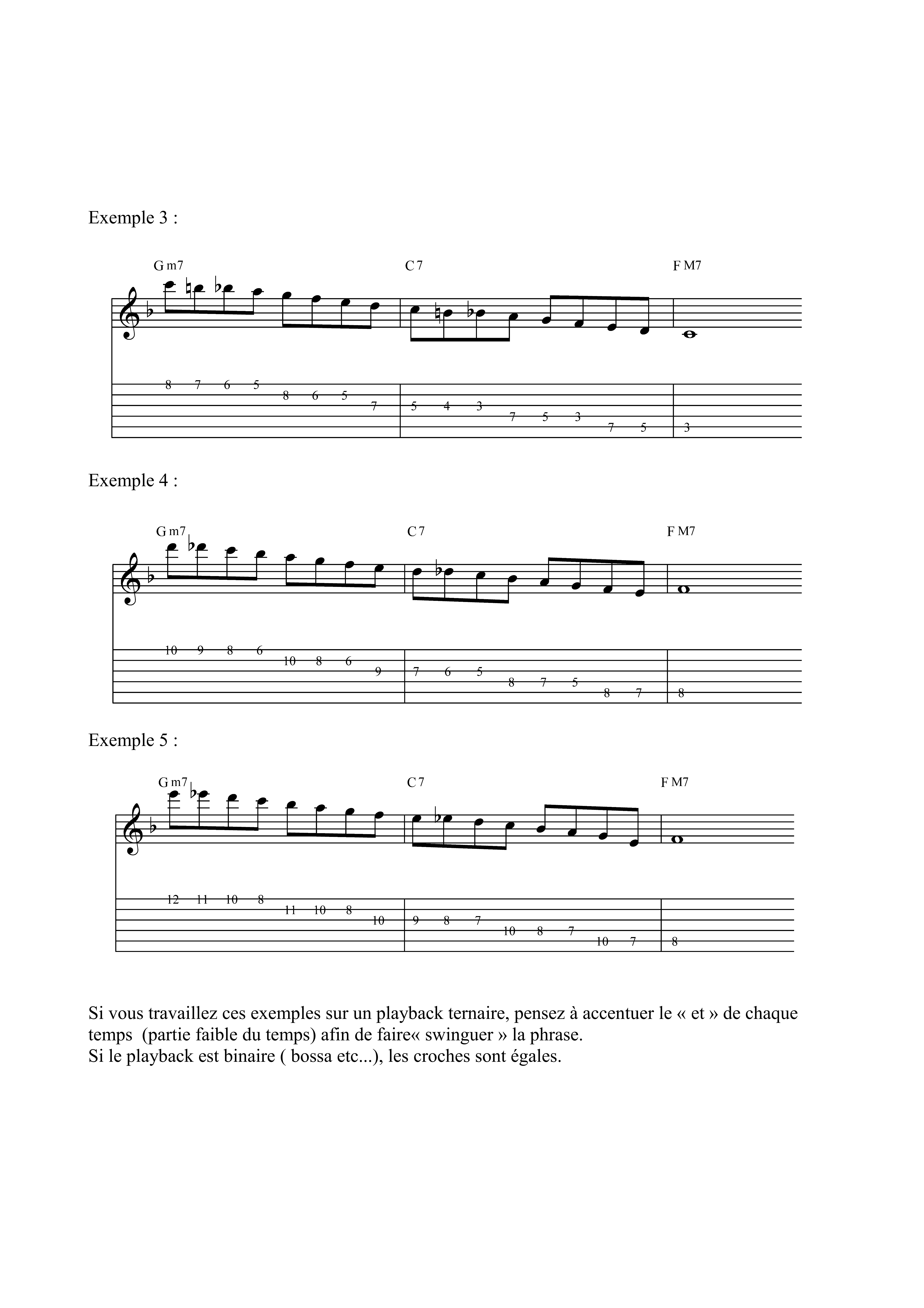 Découverte de l'importance de l'accentuation du "et" du temps afin de créer le swing. Utilisation des chromatisme pour terminer vos phrases sur les notes pertinentes de l'accord.