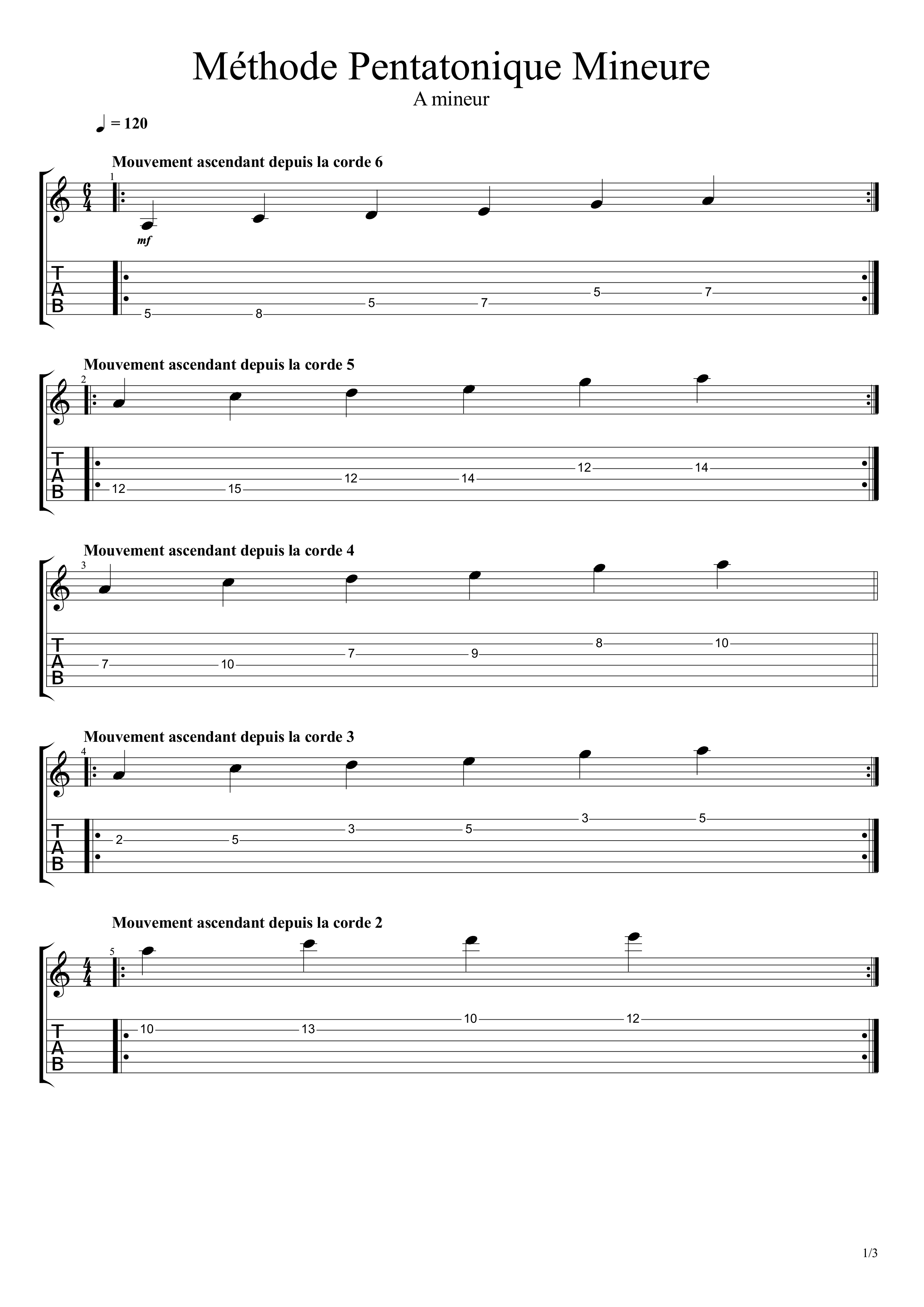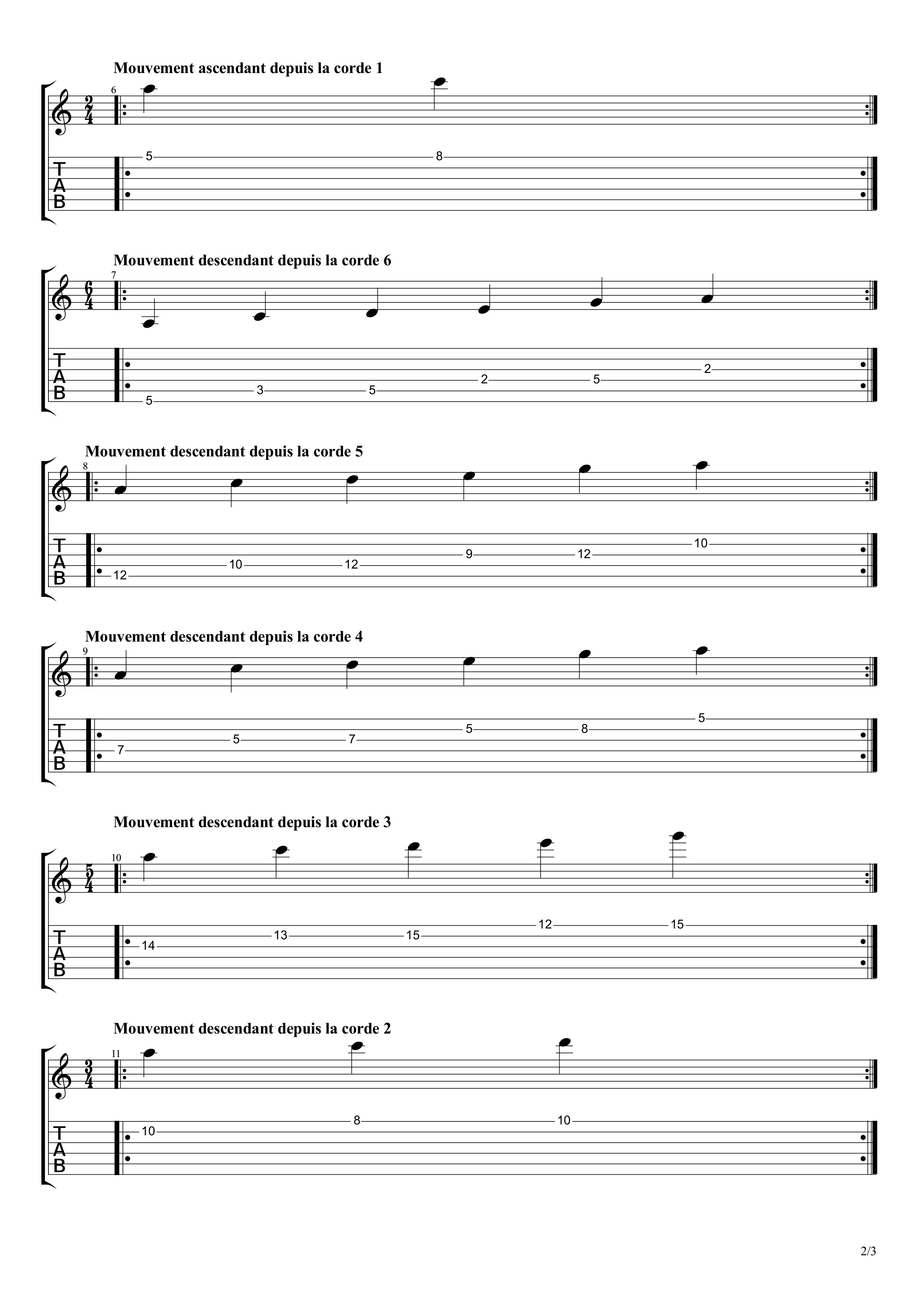 | Corde 6 | Corde 5 | Corde 4 | Corde 3 | Corde 2 | Corde 1 |