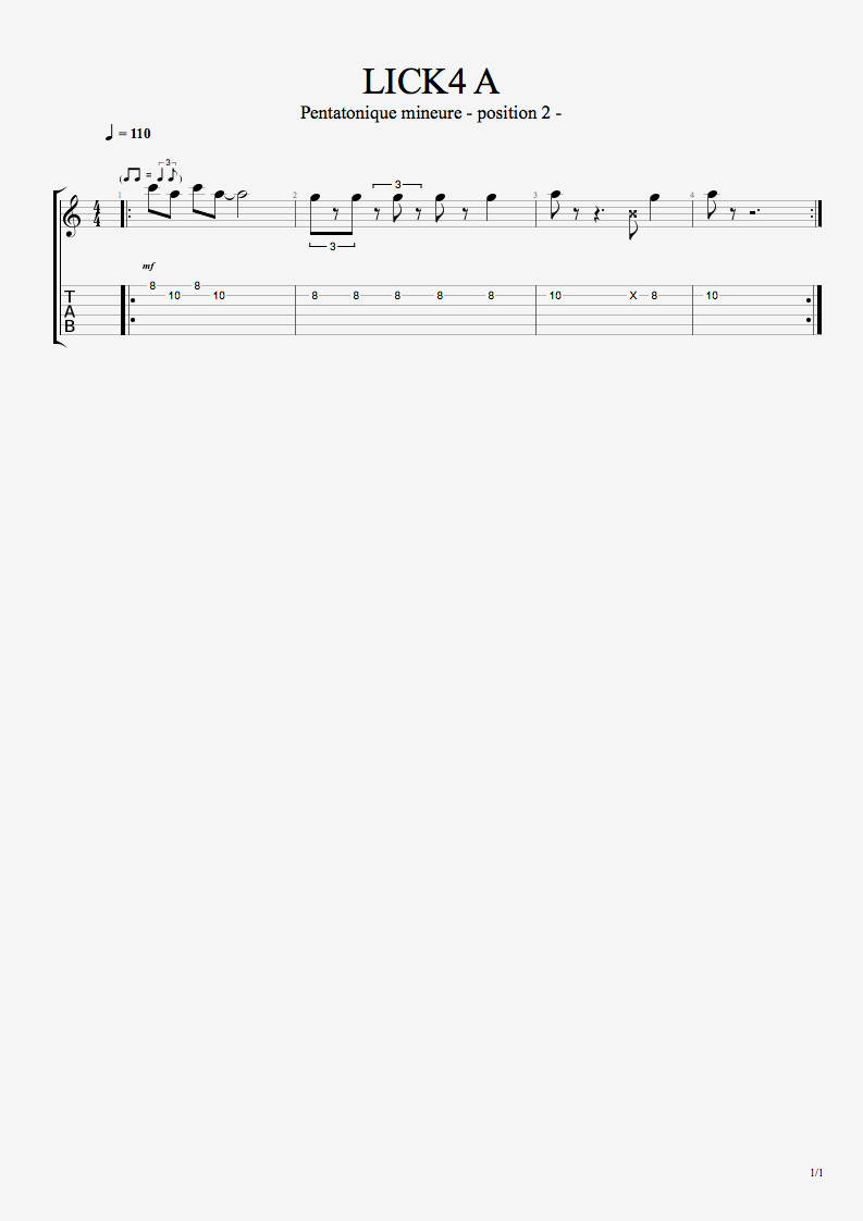 Petit phrasé blues utilisant également la position 2 de la penta mineure, cette fois en tonalité de A