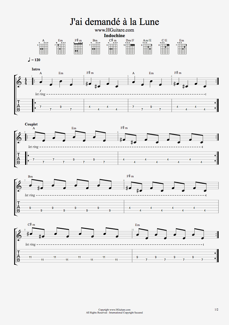 Apprendre J'ai demandé à la lune d'Indochine à la guitare