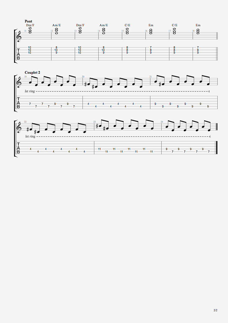 | Corde 6 | Corde 5 | Corde 4 | Corde 3 | Corde 2 | Corde 1 |
