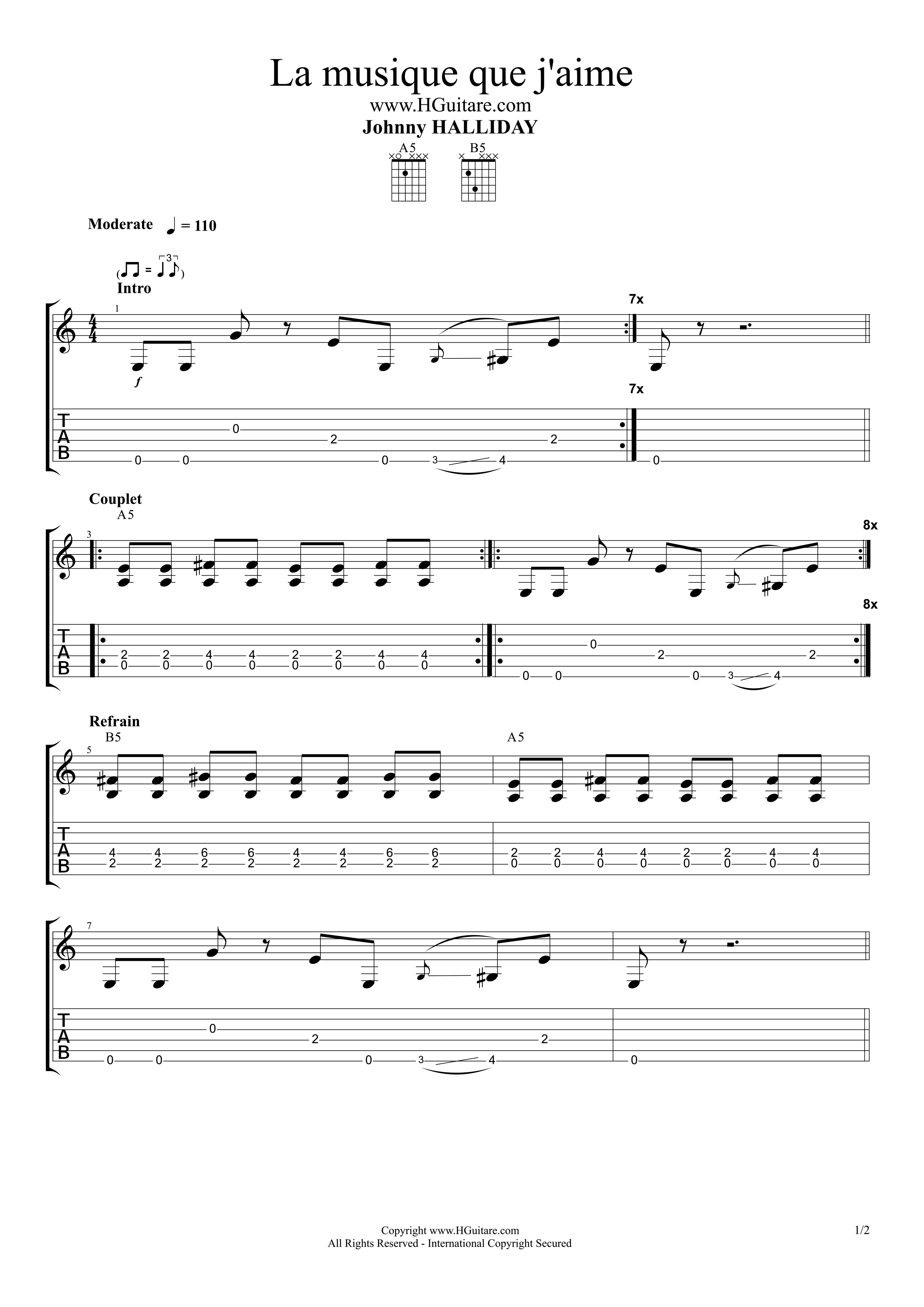 Apprendre La musique que j'aime de Johnny Hallyday à la guitare
