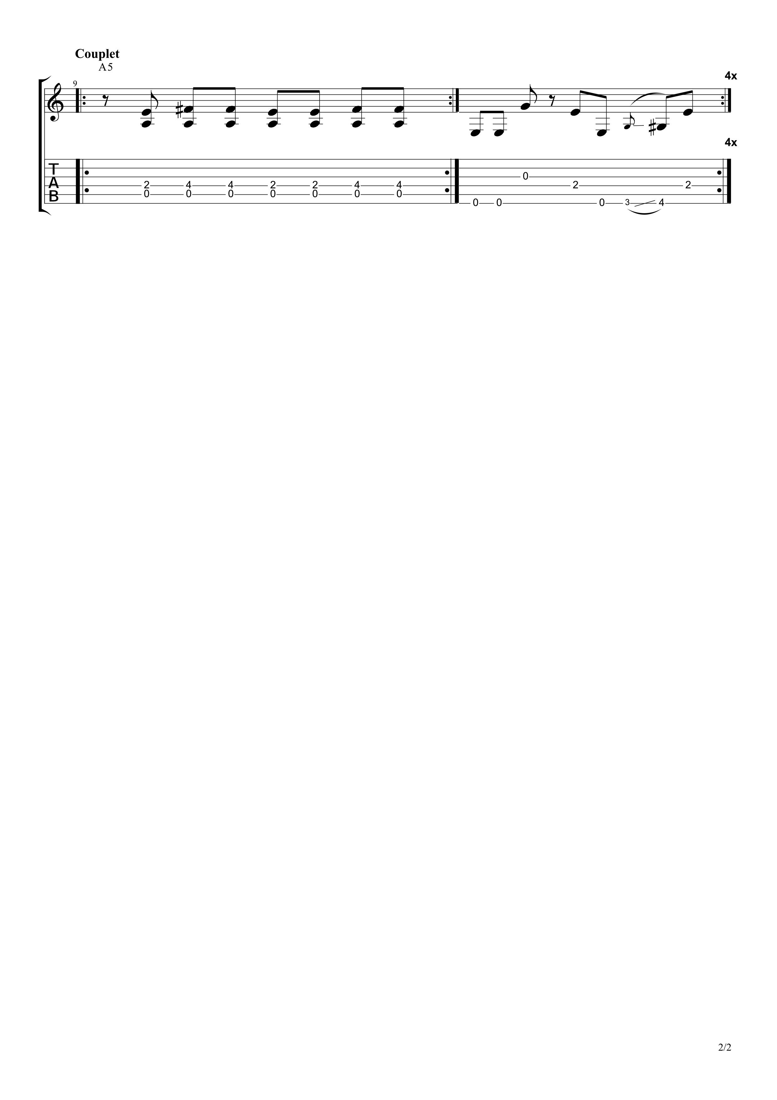 | Corde 6 | Corde 5 | Corde 4 | Corde 3 | Corde 2 | Corde 1 |