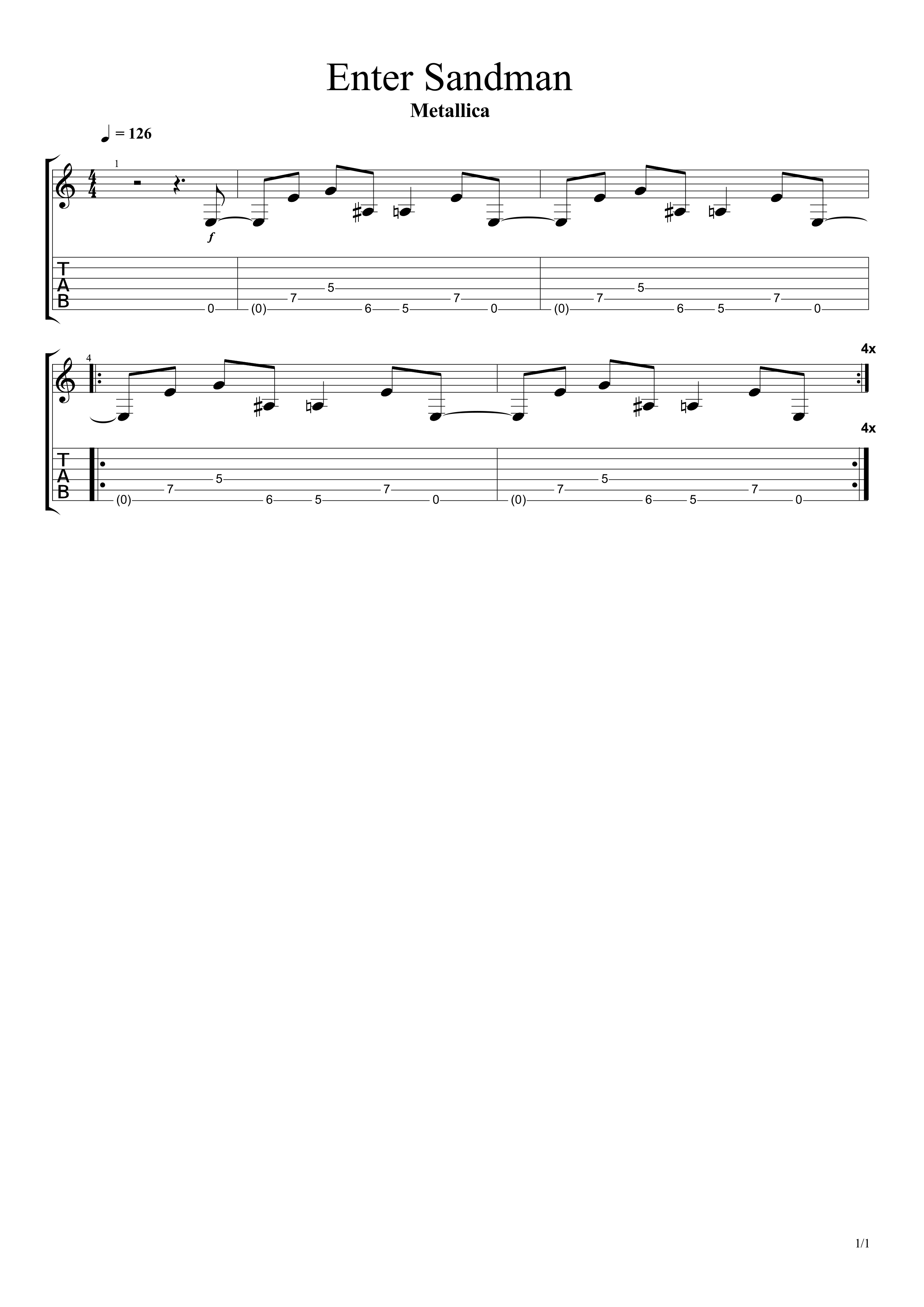 Enter Sandman se rapproche plus d'une composition classique plus accessible que les productions réalisée par le groupe sur ...And Justice For All. Elle débute avec ce riff d'intro, justement, joué en clean et accompagnée par les toms de Lars Ulrich. La seconde guitare jouant l'accord E avec un effet de wah-wah puis des guitare distortionnée fond monter le riff en puissance.