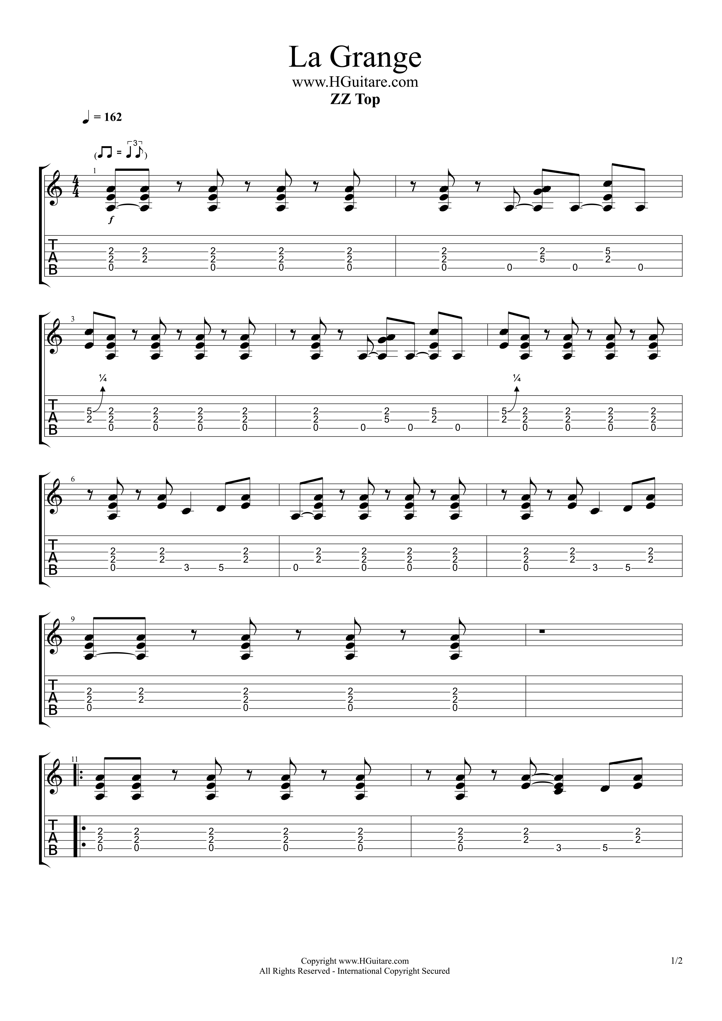 Sorti en 1973 sur le troisième album (Tres Hombres) du groupe américain ZZ Top, La Grange est sans conteste un des titres les plus populaires des Blues-Rockeur Texan. C'est un titres très rythmé soutenu par un riff plutôt sec, mais ô combien efficace :)