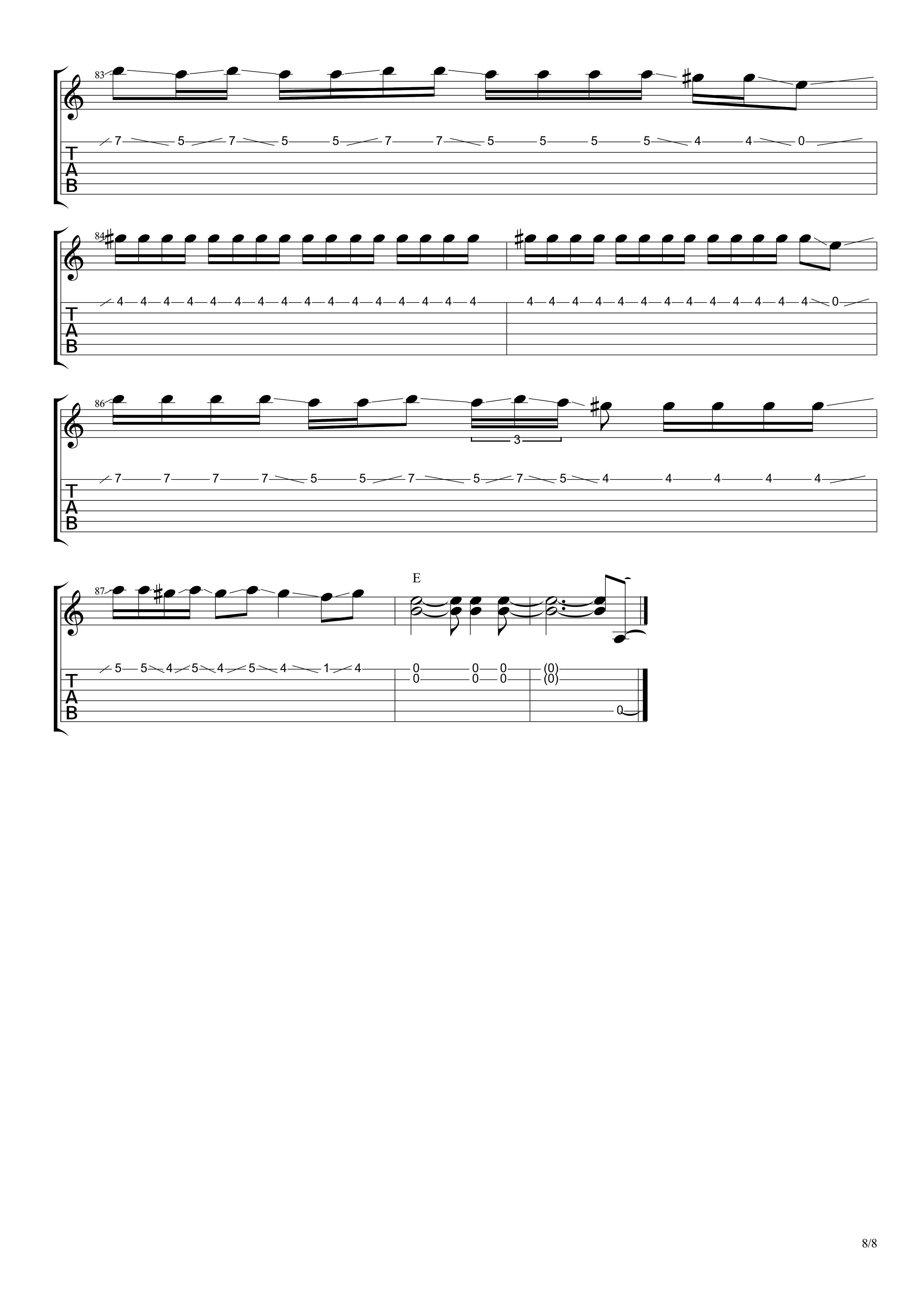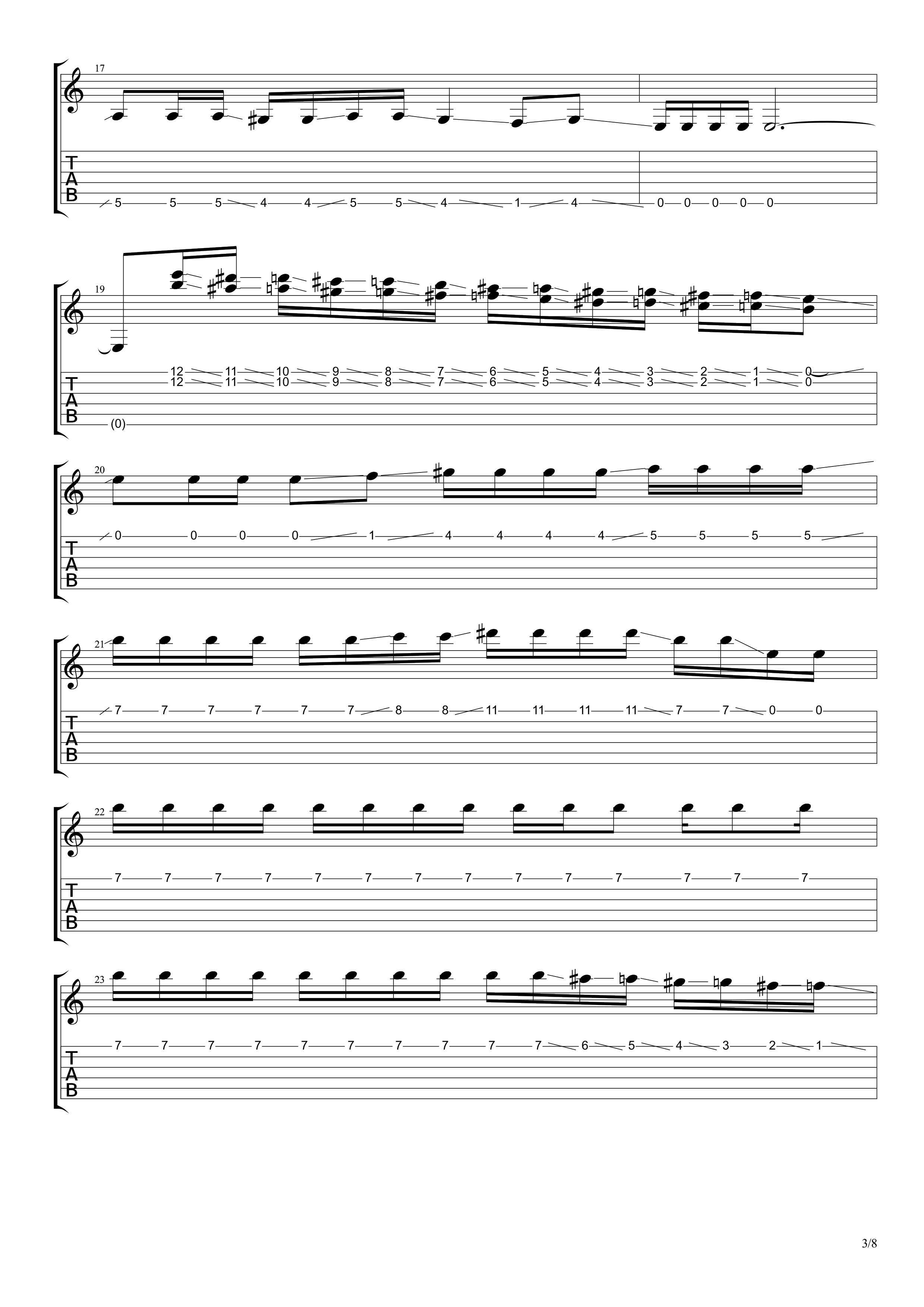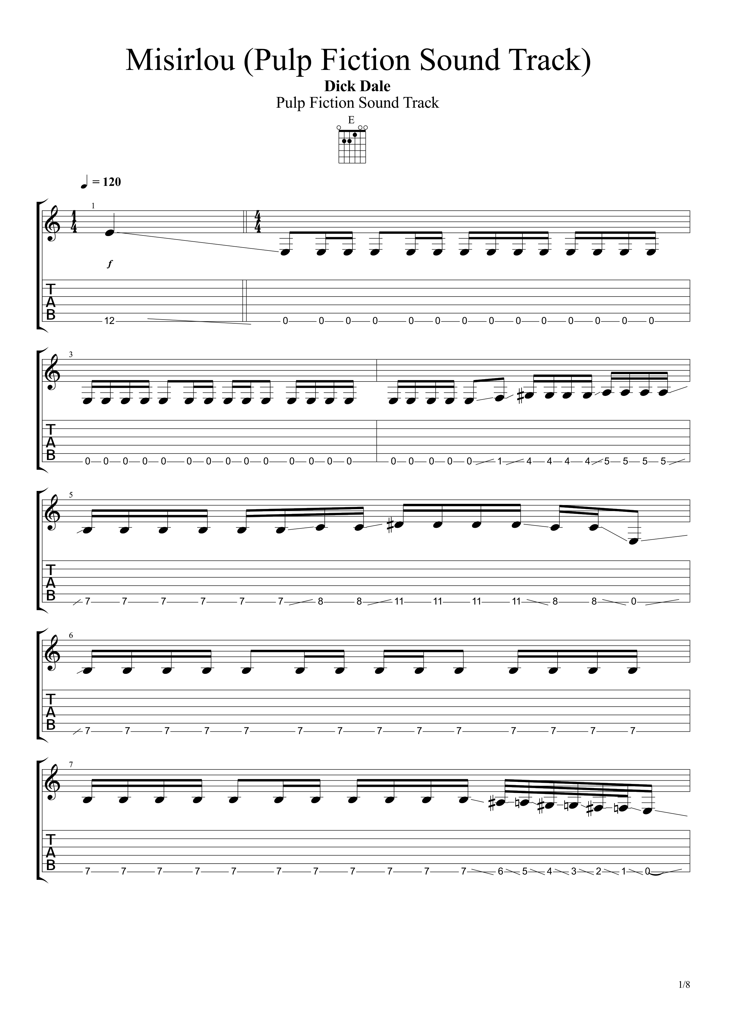 Essentiellement en aller-retour, ce plan typique de Surf Rock doit s'appréhender en 2 étapes. La première, est la répartition des temps sur lequel les changements de notes sont faits. Ensuite, une fois le plan simple bien intégrer, il faut faire ce qu'on appelle du remplissage. Et là, c'est plutôt libre ; dans le sens où il n'existe pas de version figée, ou plutôt des centaines de versions. Celle de Dick Dale étant sans doute la plus connue, je vous propose de vous en inspirer.