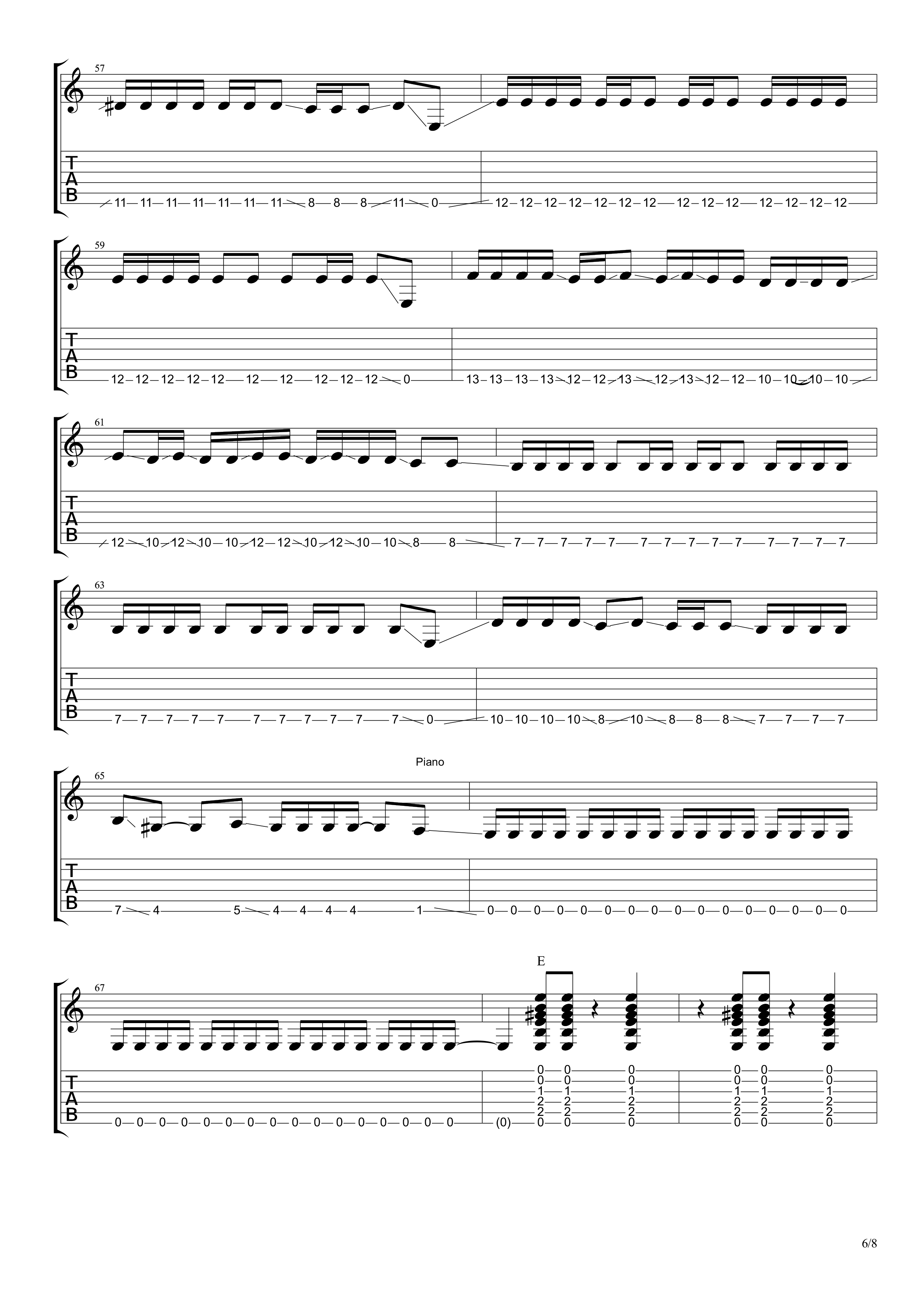 | Corde 6 | Corde 5 | Corde 4 | Corde 3 | Corde 2 | Corde 1 |