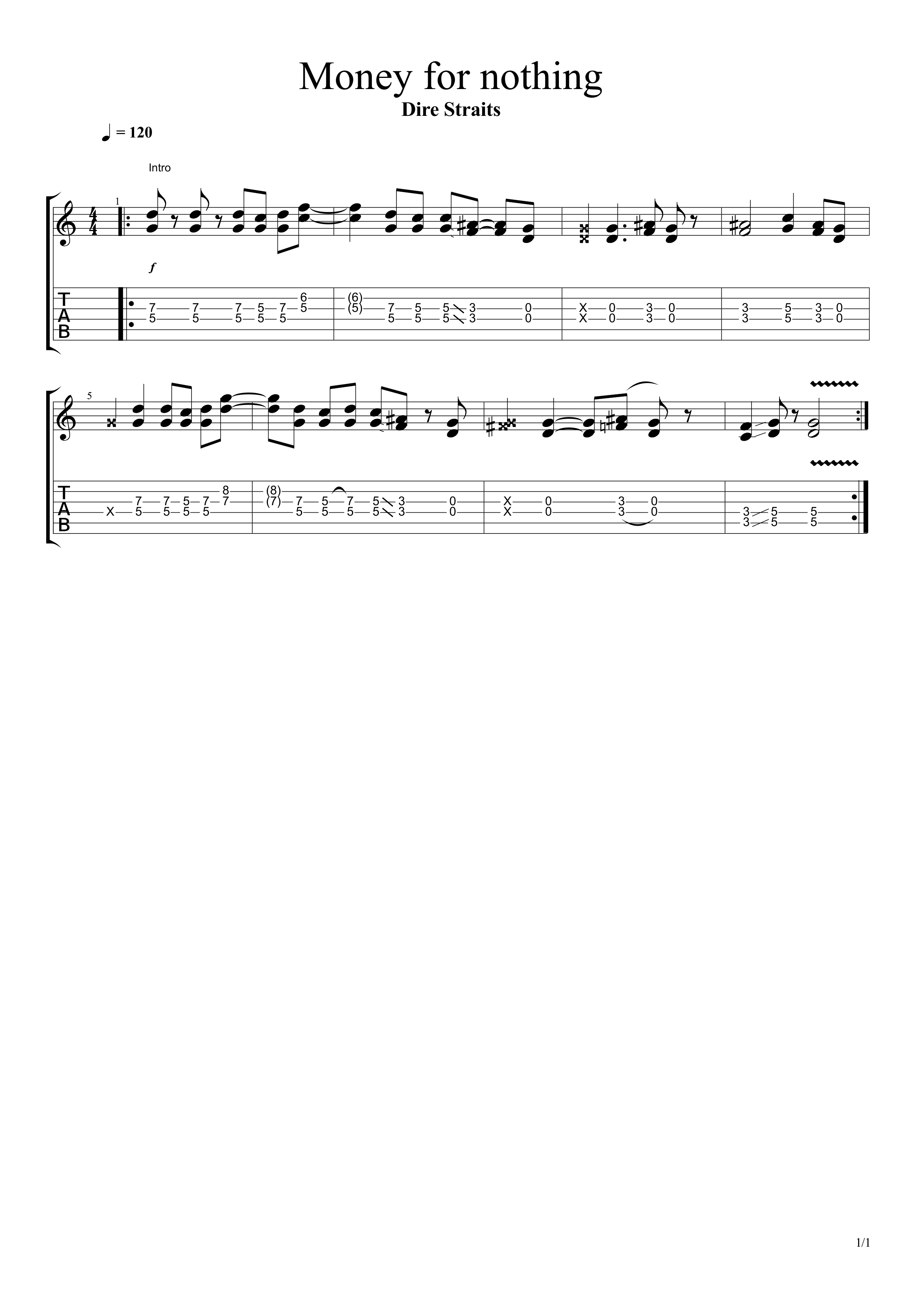 Apprendre Money For Nothing de Dire Straits à la guitare
