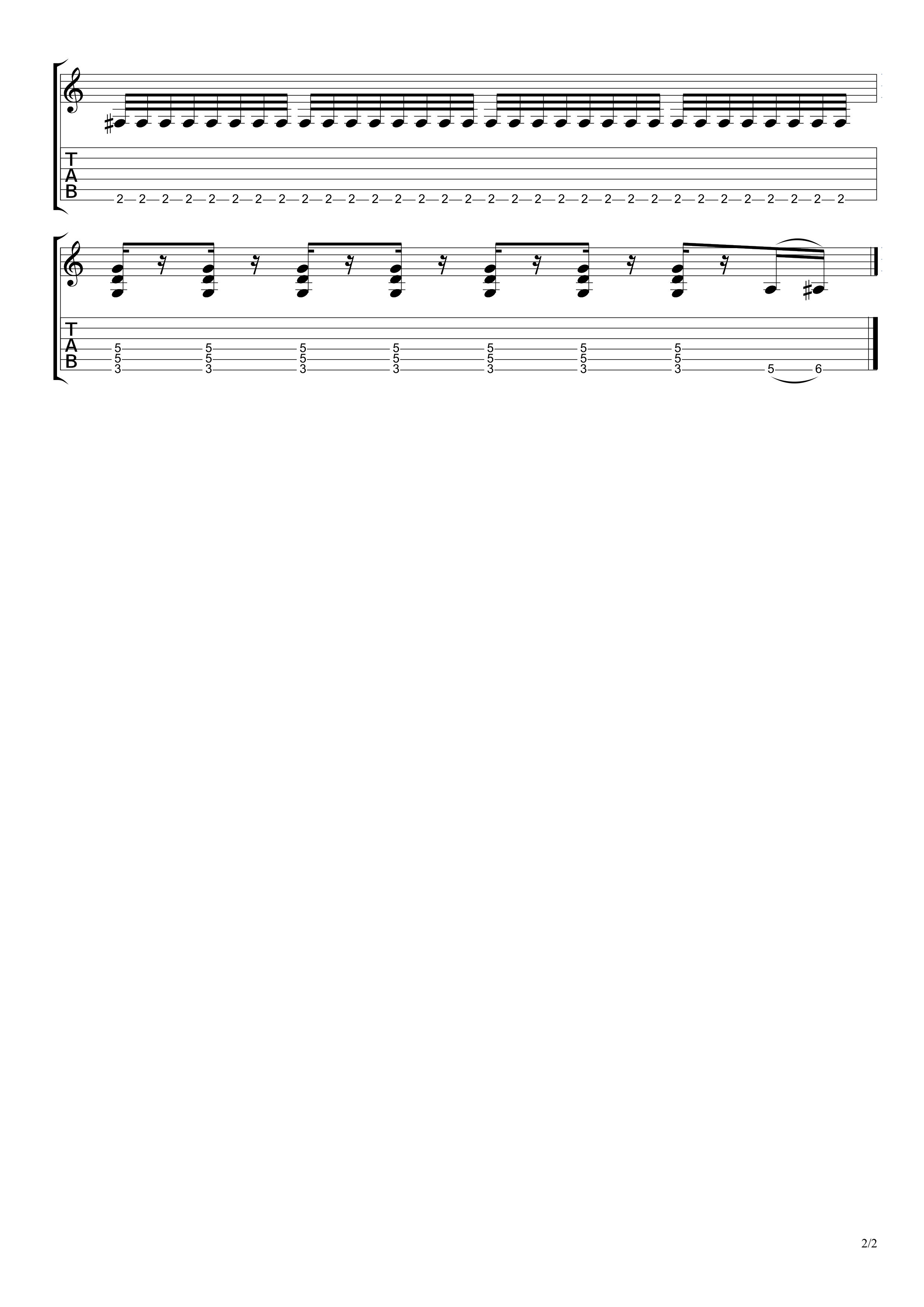Egalement, le petit changement de corde dans les mesures que l'on va appeler "linéaires" peut vous donner un peu de fil à retordre mais en soit, vous verrez que le doigté utilisé permet de facilement enchaîner ce phrasé. Enfin, et comme déjà dit, soyez bien attentif sur la dernière mesure. Elle casse pas mal le rythme, mais a le mérite de vous permettre de reposer un peu votre main droite en plus d'amener une touche un peu plus intéressante à ce riff définitivement fou !