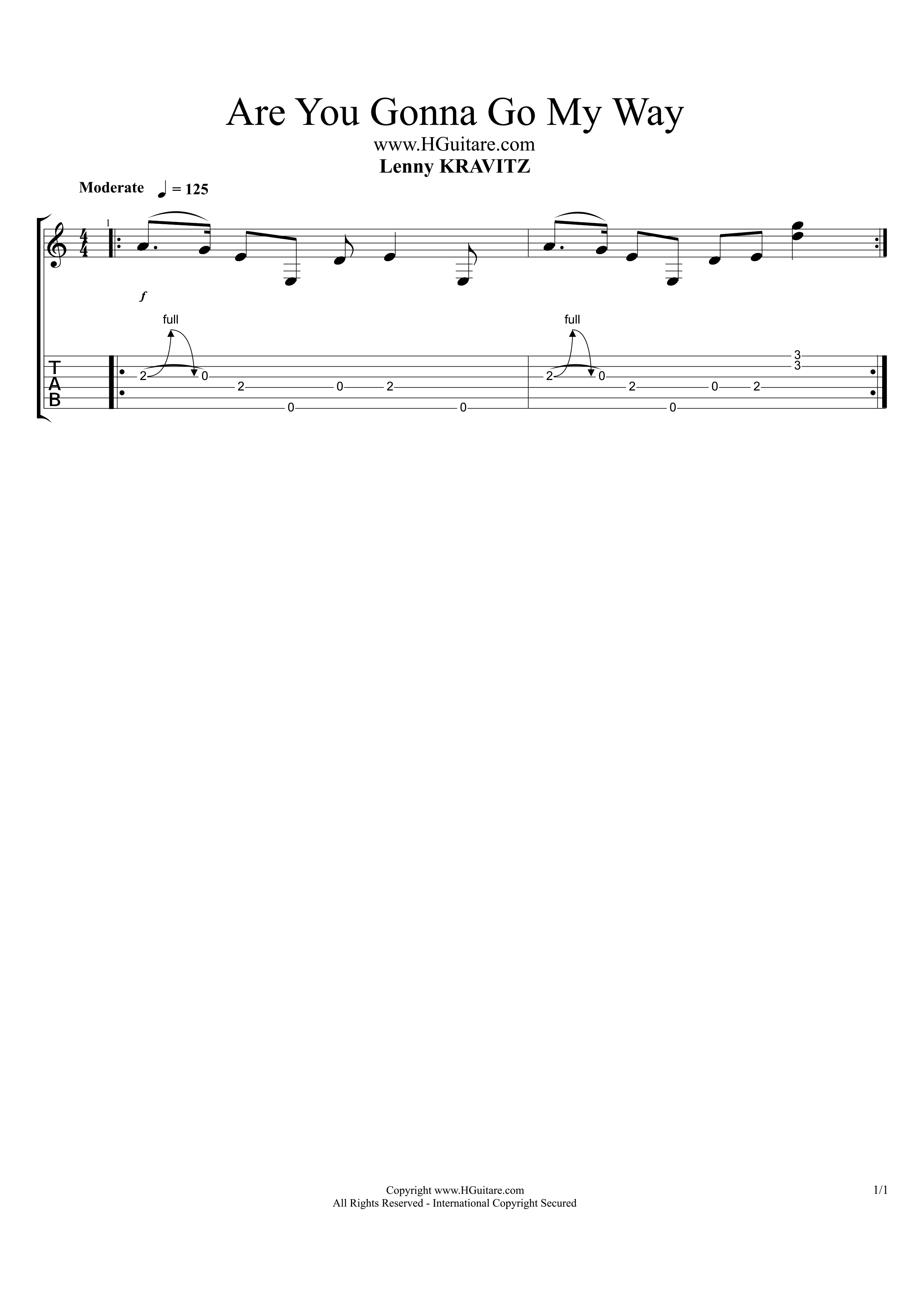 Apprendre Are You Gonna Go My Way de Lenny Kravitz à la guitare